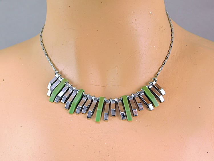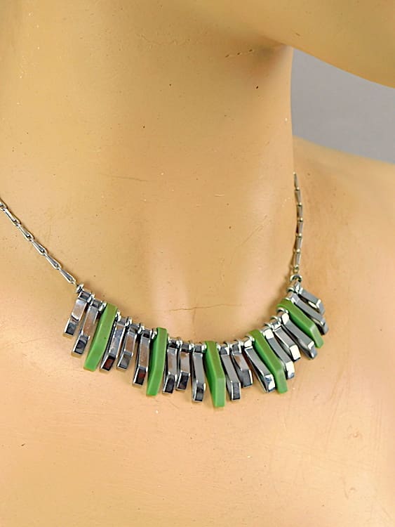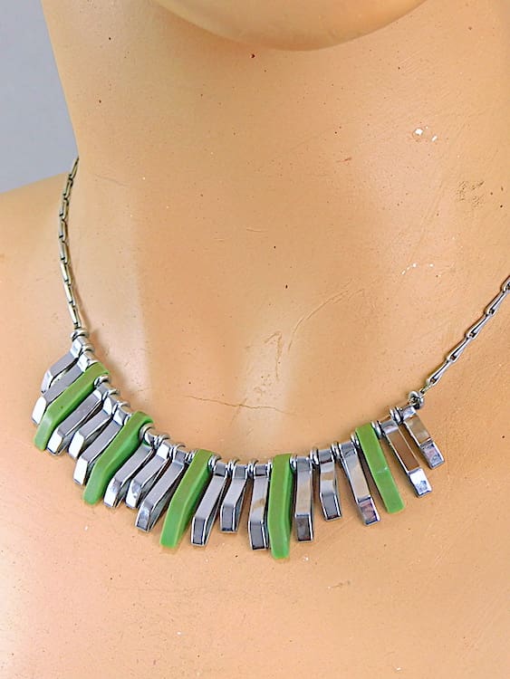 Made in the early 1930’s of green galalith and chrome.