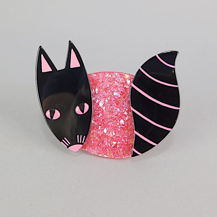 French vintage galalith hand made large round fox brooch. Hand painted and made by Marie-Christie Pavone, signed to the back and fitted with a roll safety clasp.