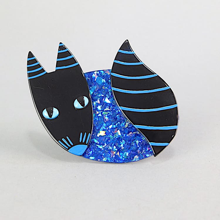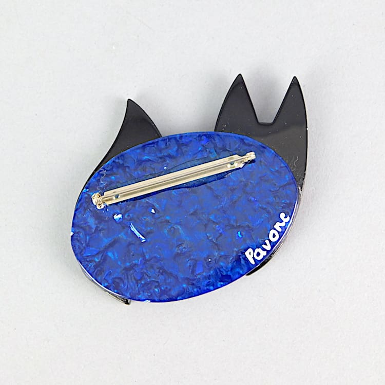 French vintage galalith hand made large round fox brooch. Hand painted and made by Marie-Christie Pavone, signed to the back and fitted with a roll safety clasp.