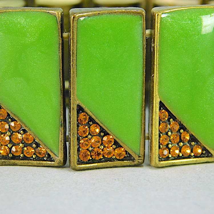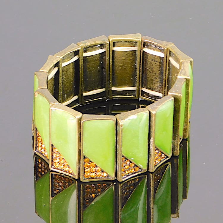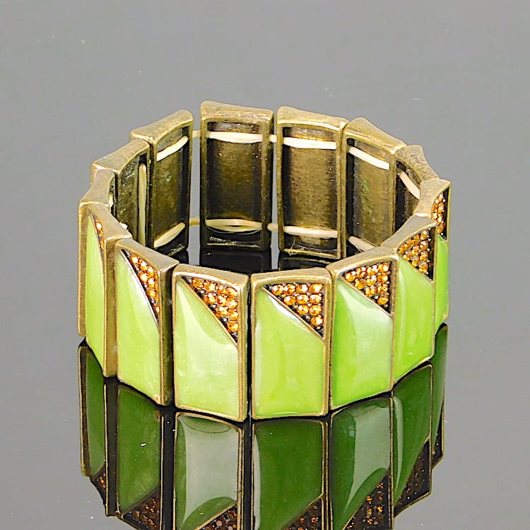 Top quality green galalith and gold diamonte bracelet.