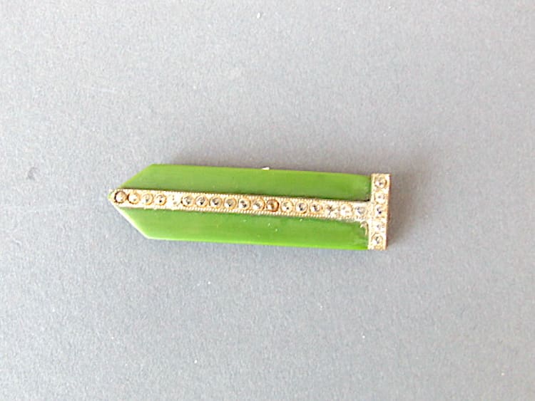 Green galalith 1930’s German dress clip (probably by Bengel).