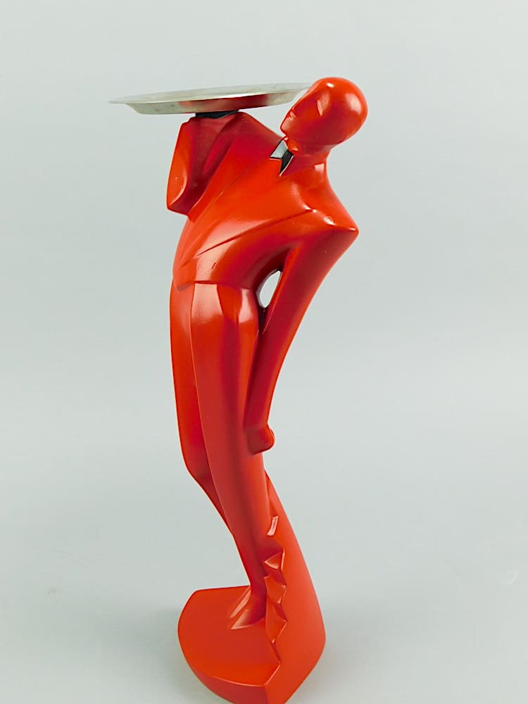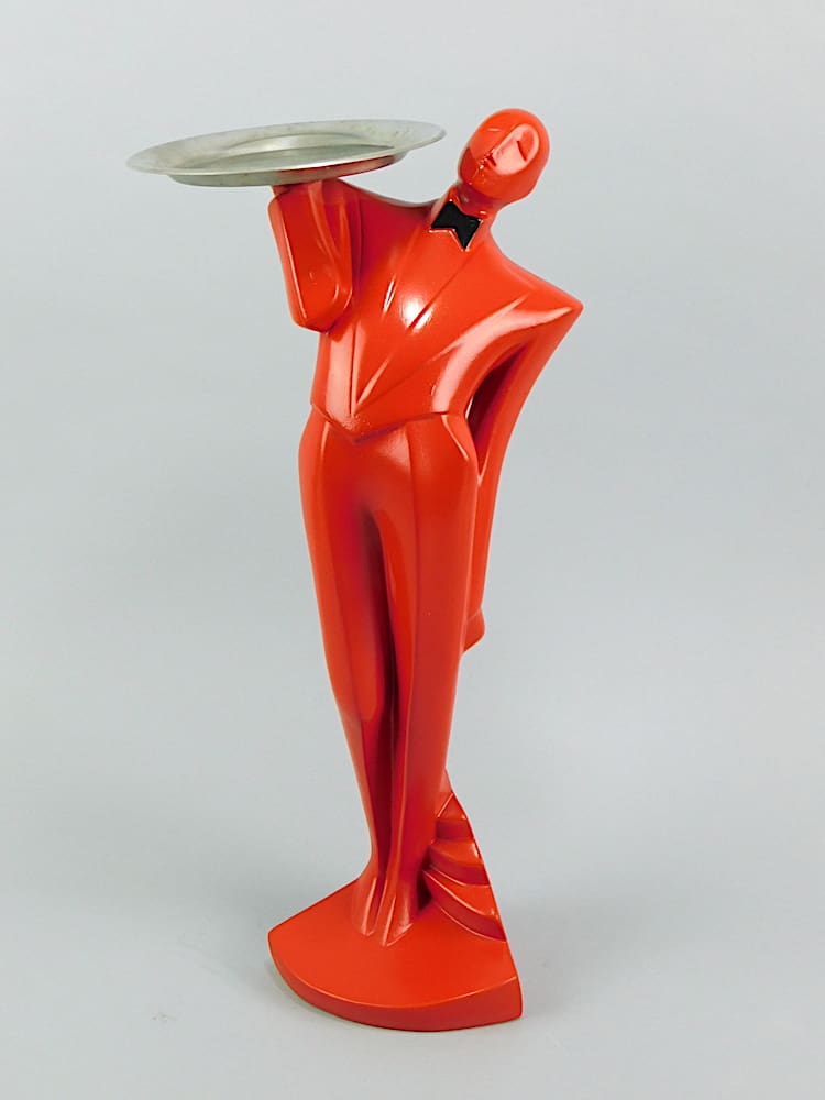 This is the now rare Garcon. He is the table top version. This model was made in three sizes in 1987. As these are ceramic not many have survived. This is the smaller version, next is the waist high one (of which I have four for sale) and then the largest was over 6 foot tall (I also have one of these but he is not for sale). I also have the table lamp version of him.
