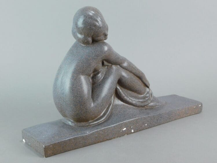 A plaster or gesso, or possibly white clay nude lady with grey speckled finish – a signed piece by Amade Genneralli.