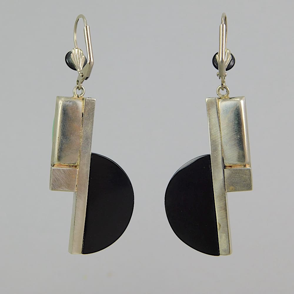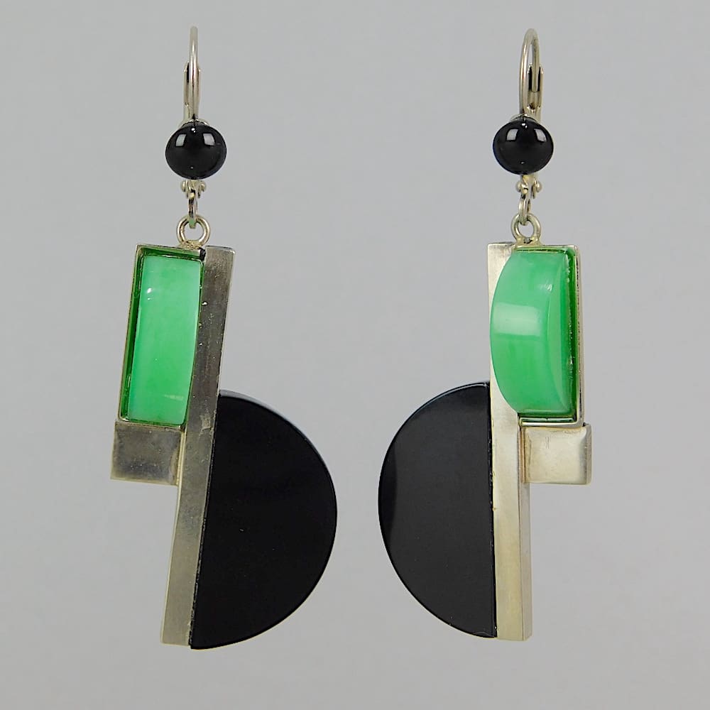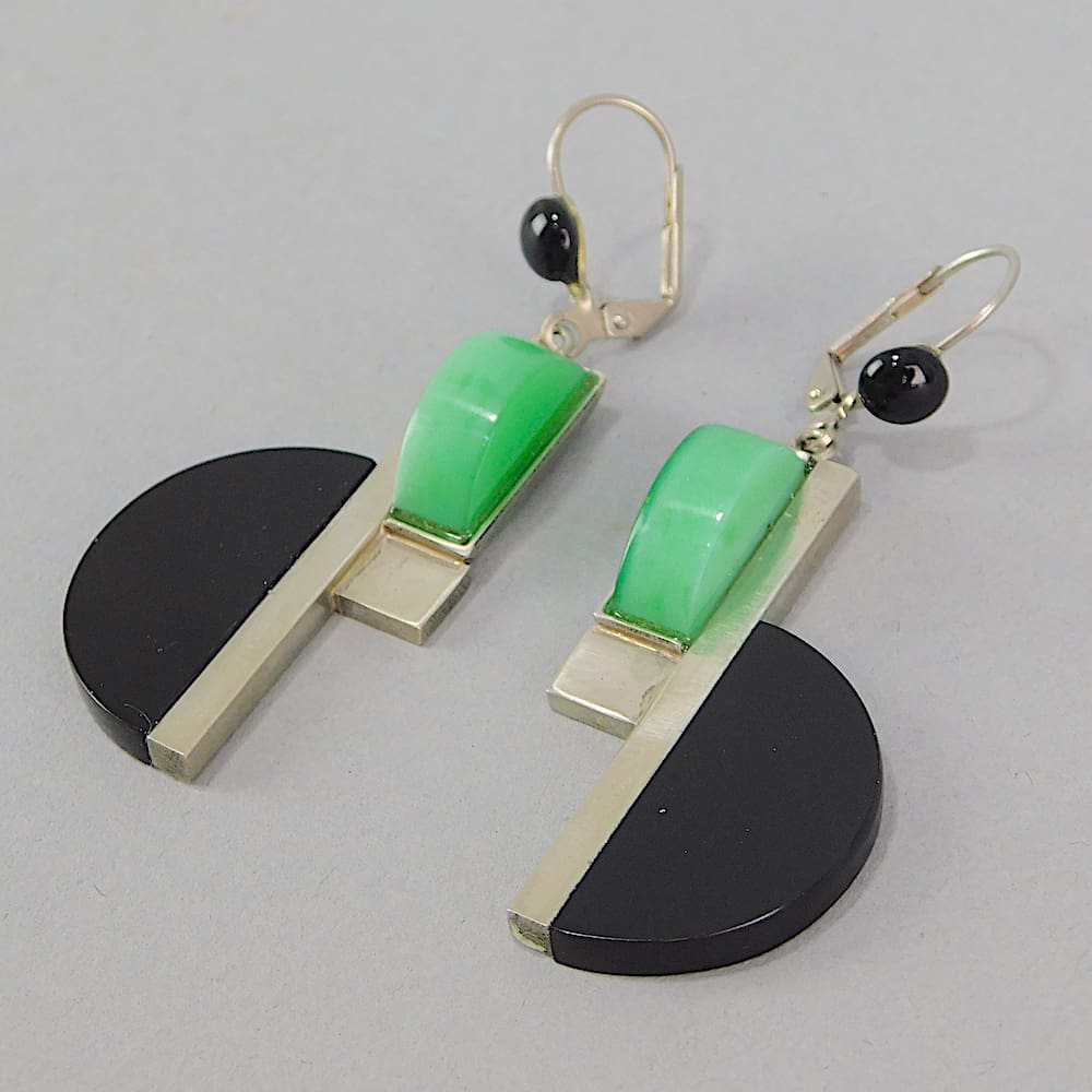Jakob Bengel galalith and chromed metal geometric earrings.