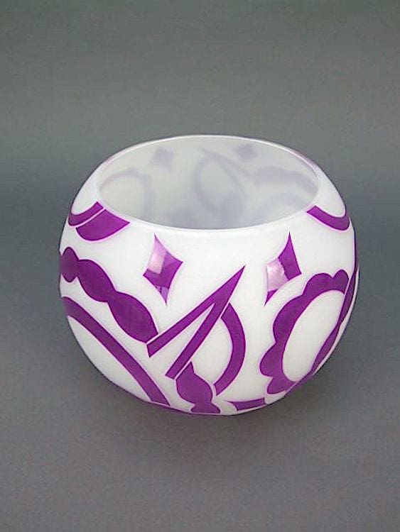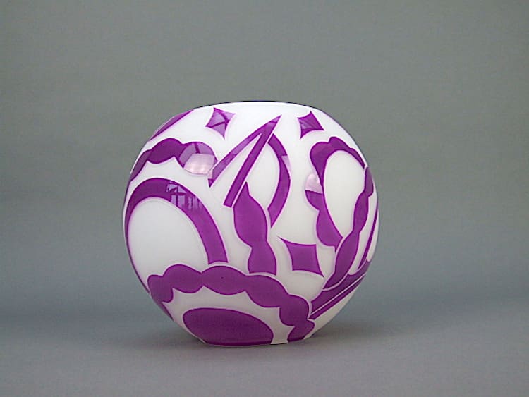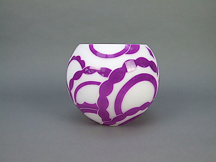 Contemporary white and purple geometric patterned vase.