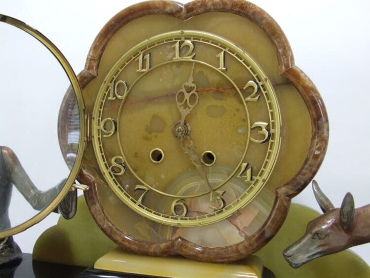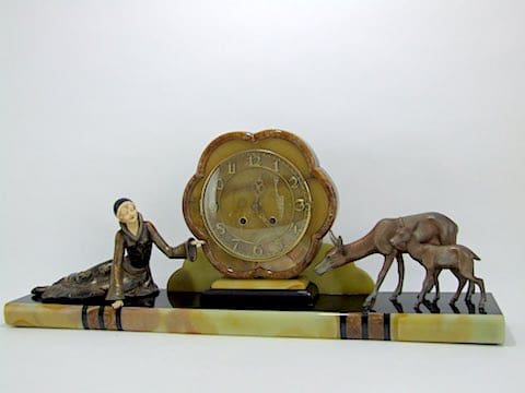A signed lady and deers group. The lady has faux ivory hands and face.