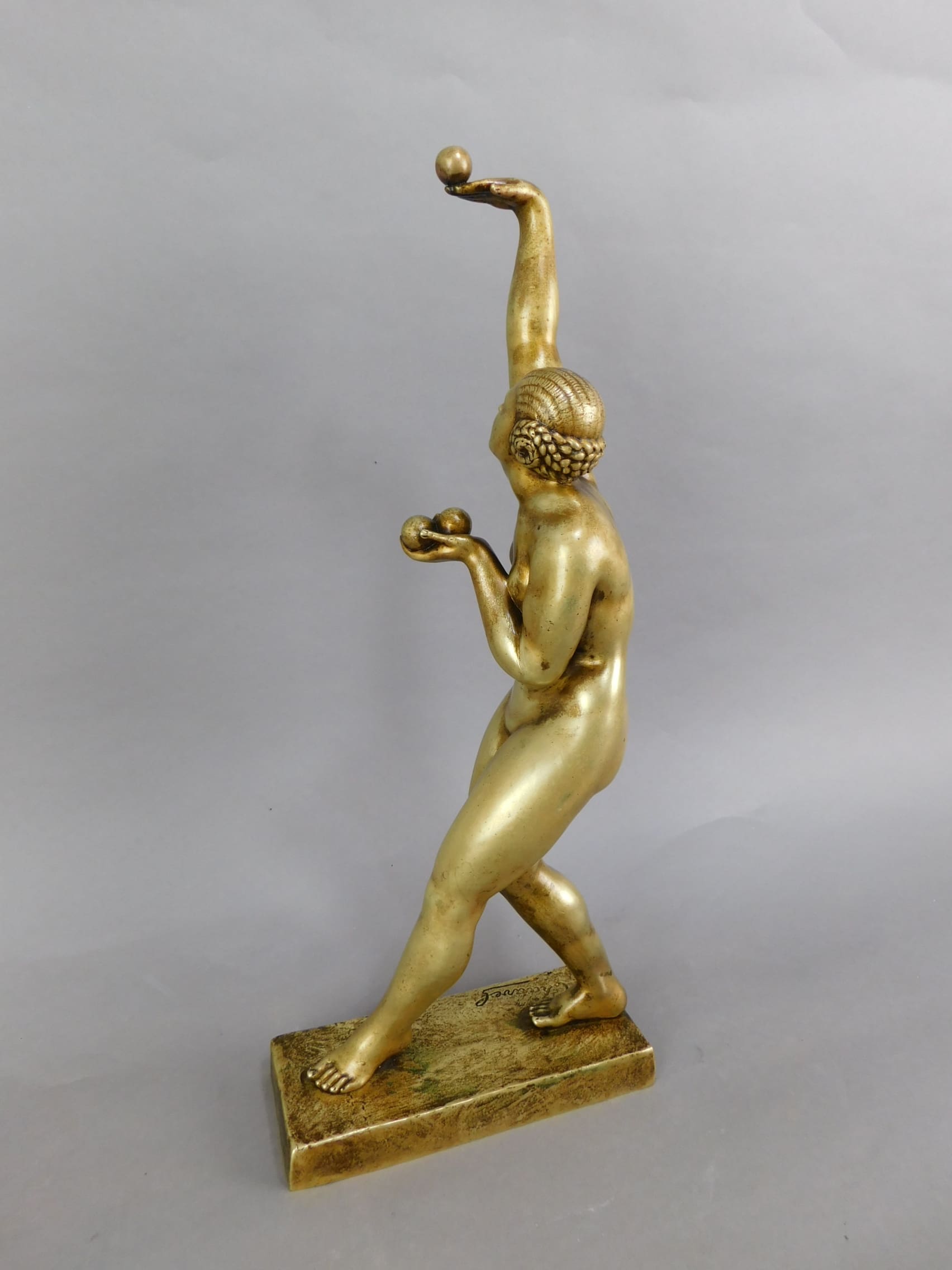 An art deco nude bronze woman balancing balls – signed Georges Chauvel to the bronze. An iconic piece in many books of the era.