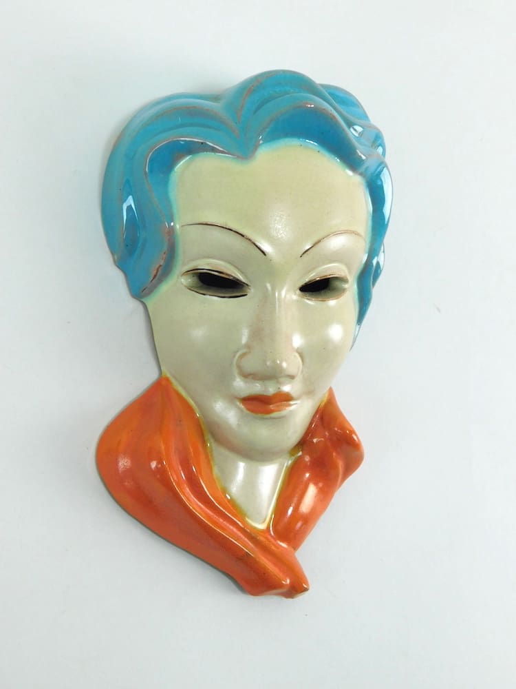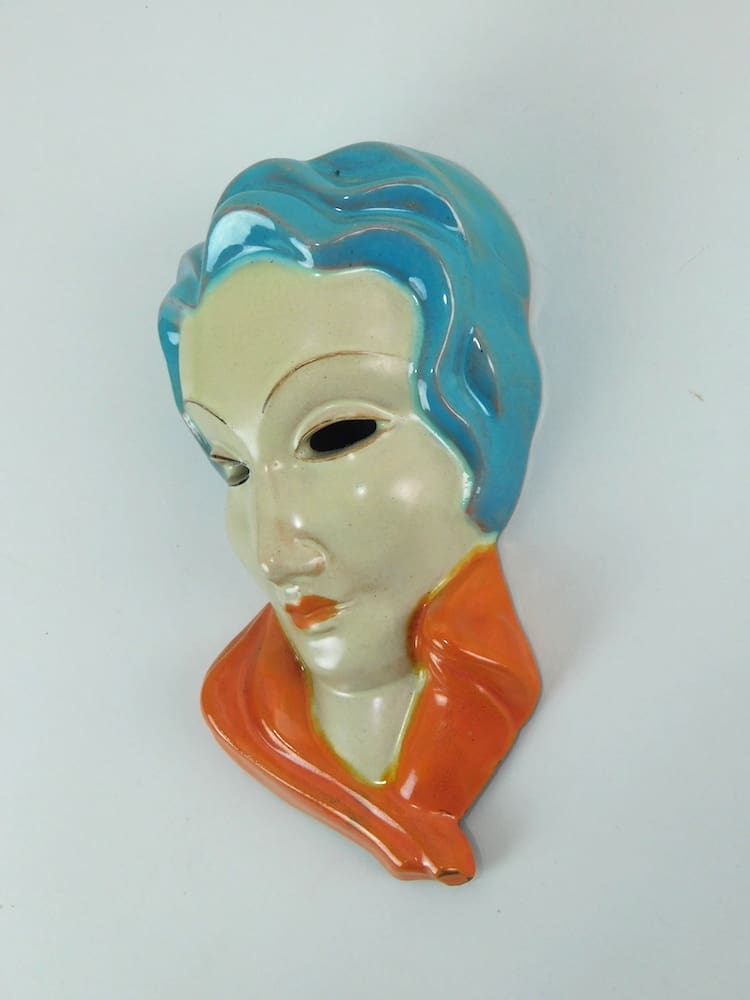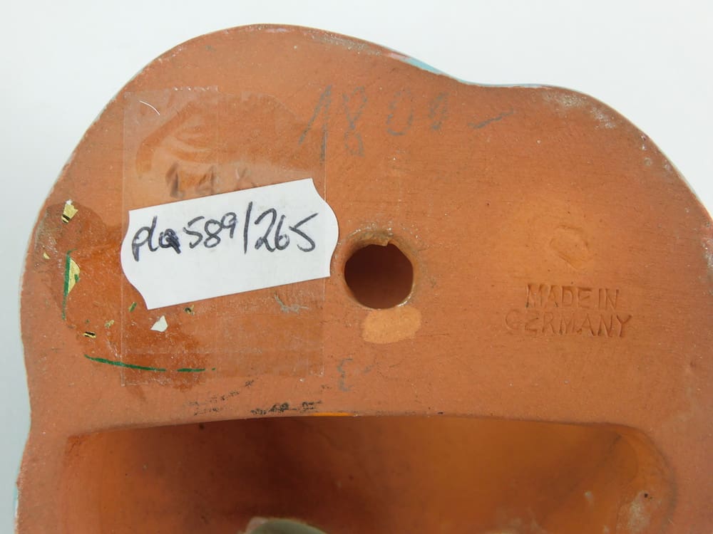 A terracotta mask from Germany – a very stylish mask, but maker unknown. It is inscribed ‘Made in Germany’ and number 146 to the reverse.