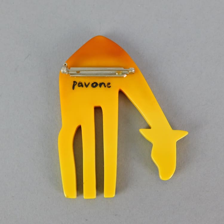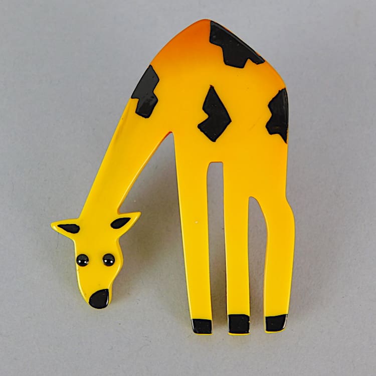 French vintage galalith hand made and painted early Giraffe brooch by Marie-Christine Pavone. Signed to the reverse and fitted with a roll safety clasp.