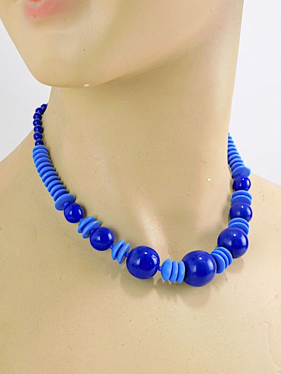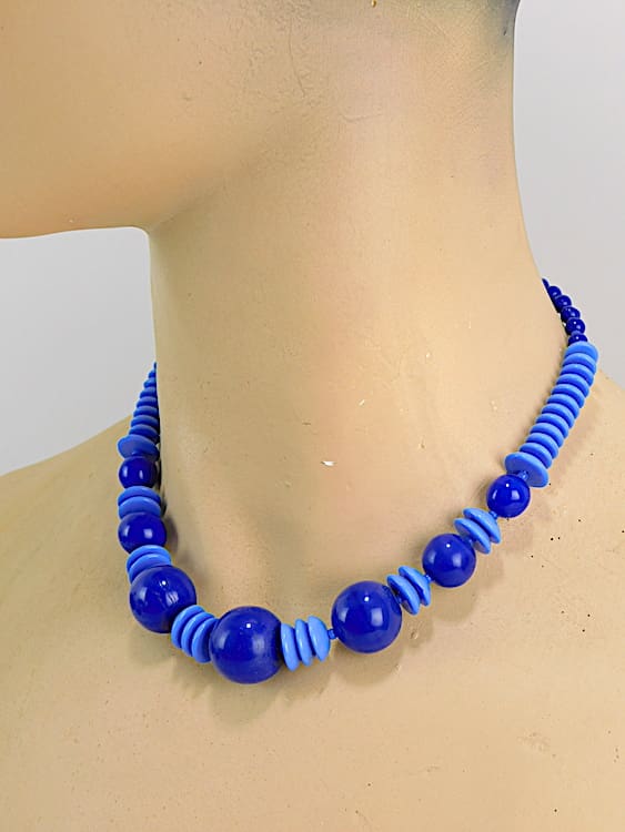 Two tone blue glass necklace, made in the late 1920’s.