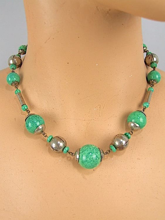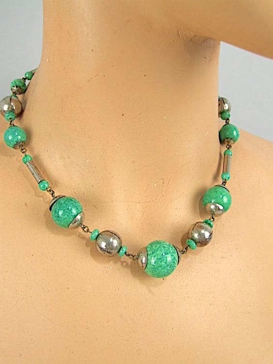 Peking glass and chromed metal necklace. Made by Bengel in the early 1930’s.