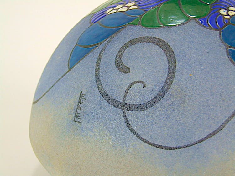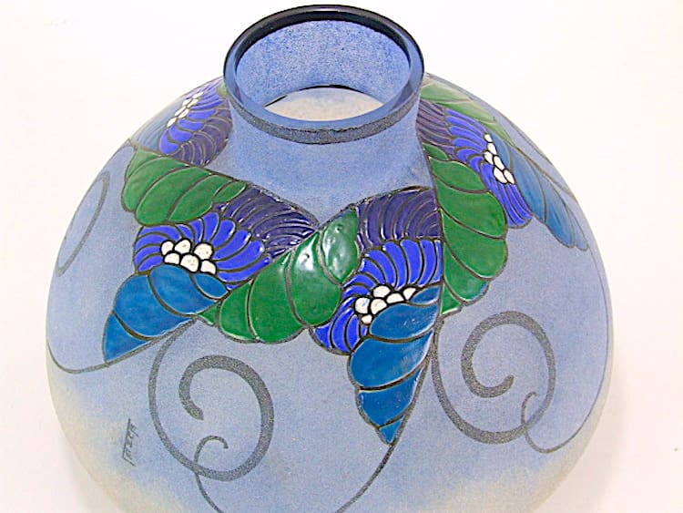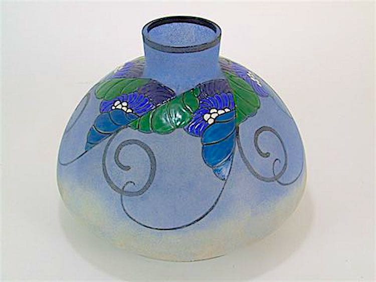 French bulbous art deco glass vase, hand painted in a design by Hellingenstein.