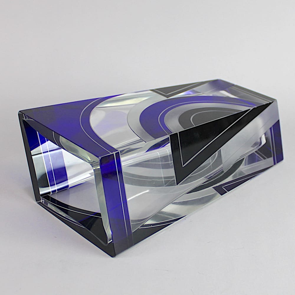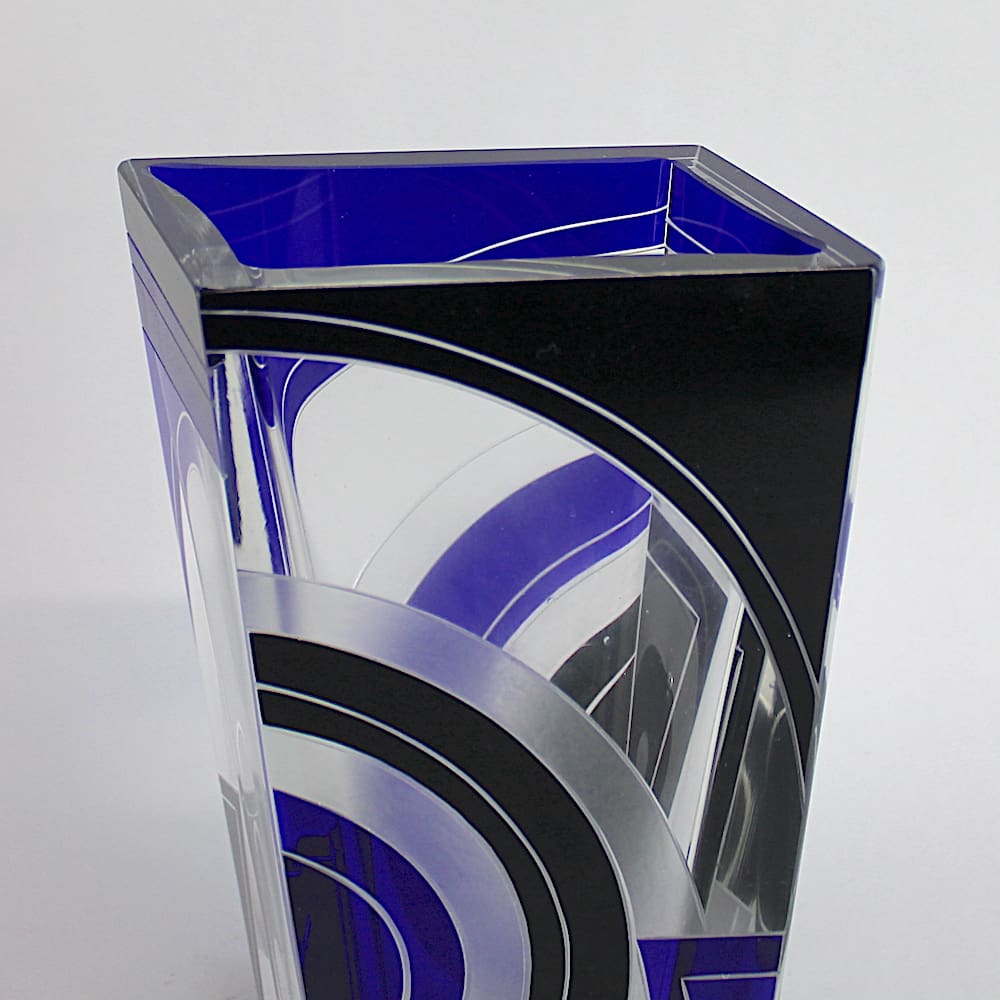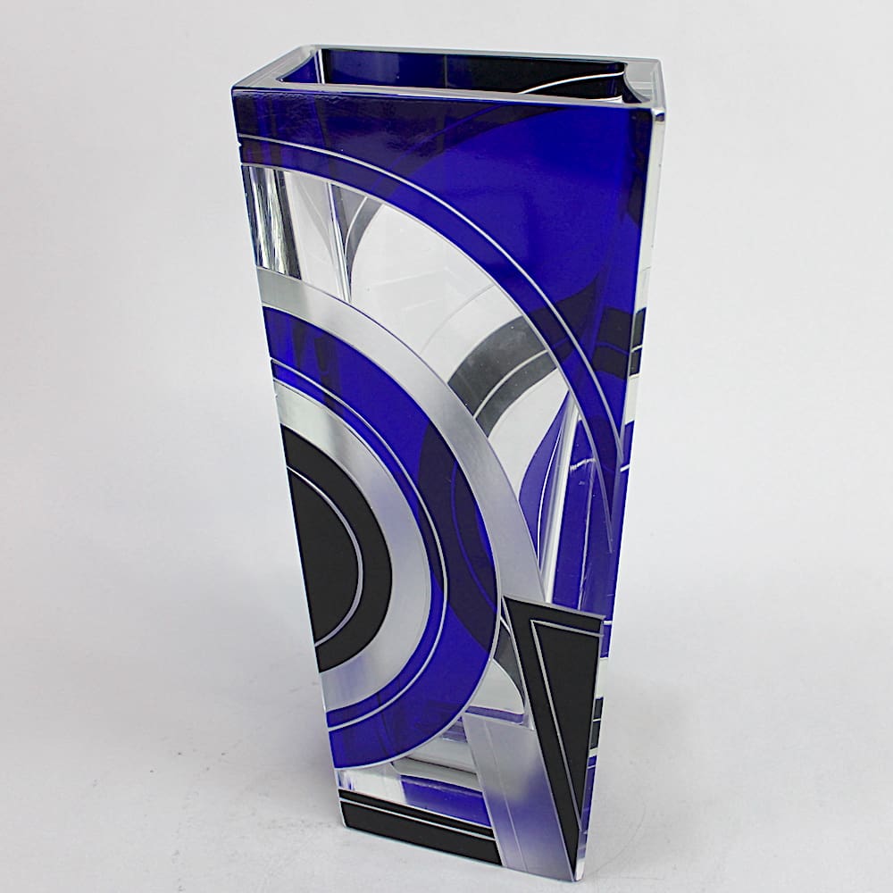 Czech leaded glass rectangle shaped vase.
