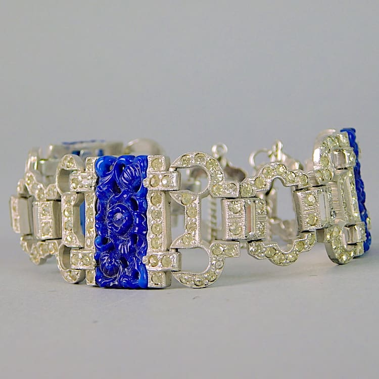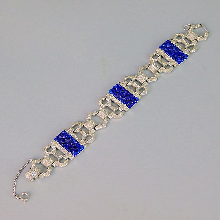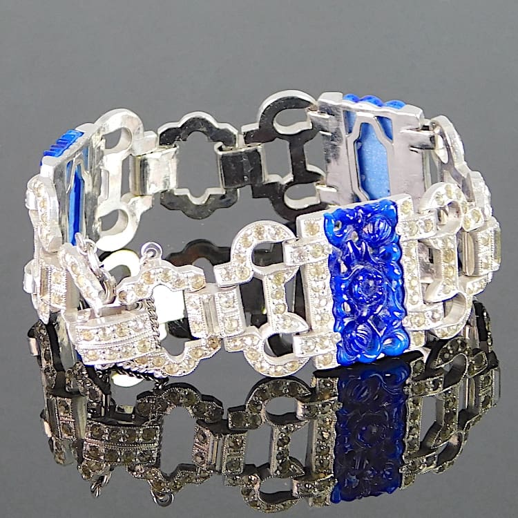 Wonderful diamonte filigree panels with navy blue glass stylised floral sections.