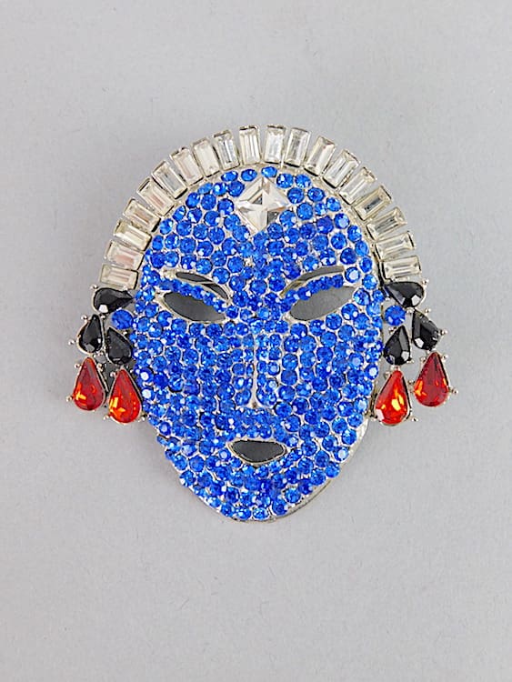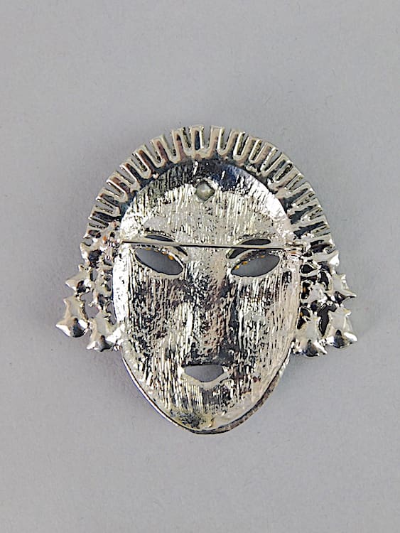 Art deco style brooch with glass stones. Fitted with a roll safety clasp.
