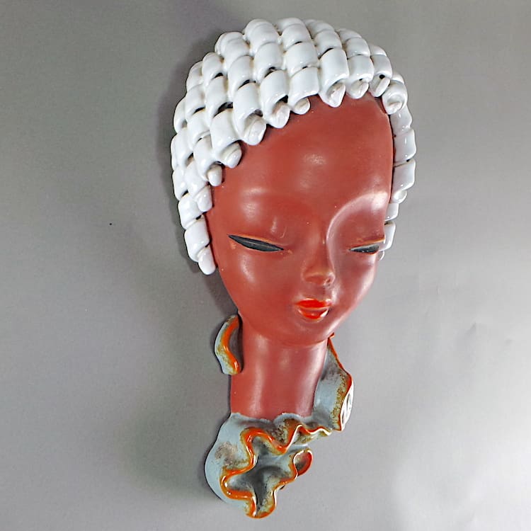Austrian hand painted ceramic art deco wall mask by Kurt Gobble for Goldscheider.