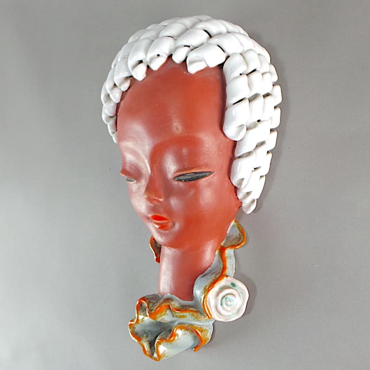 The mask is named woman’s head with curls and scarf.