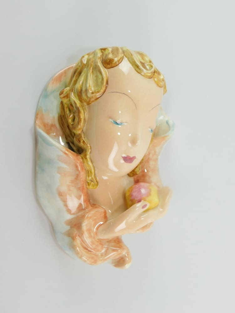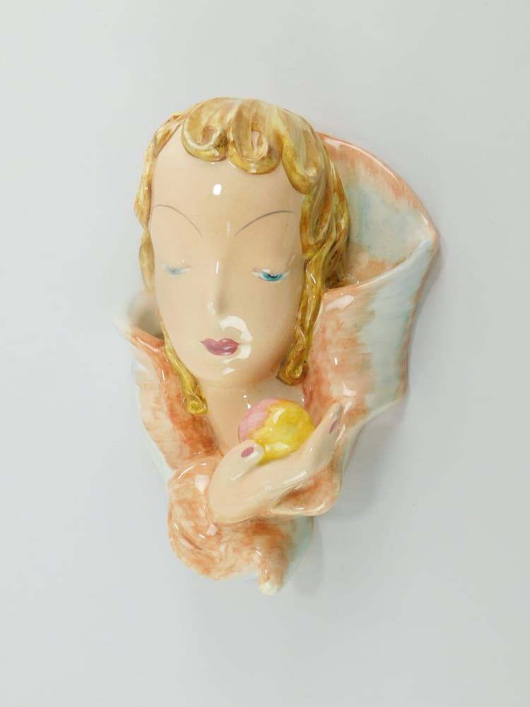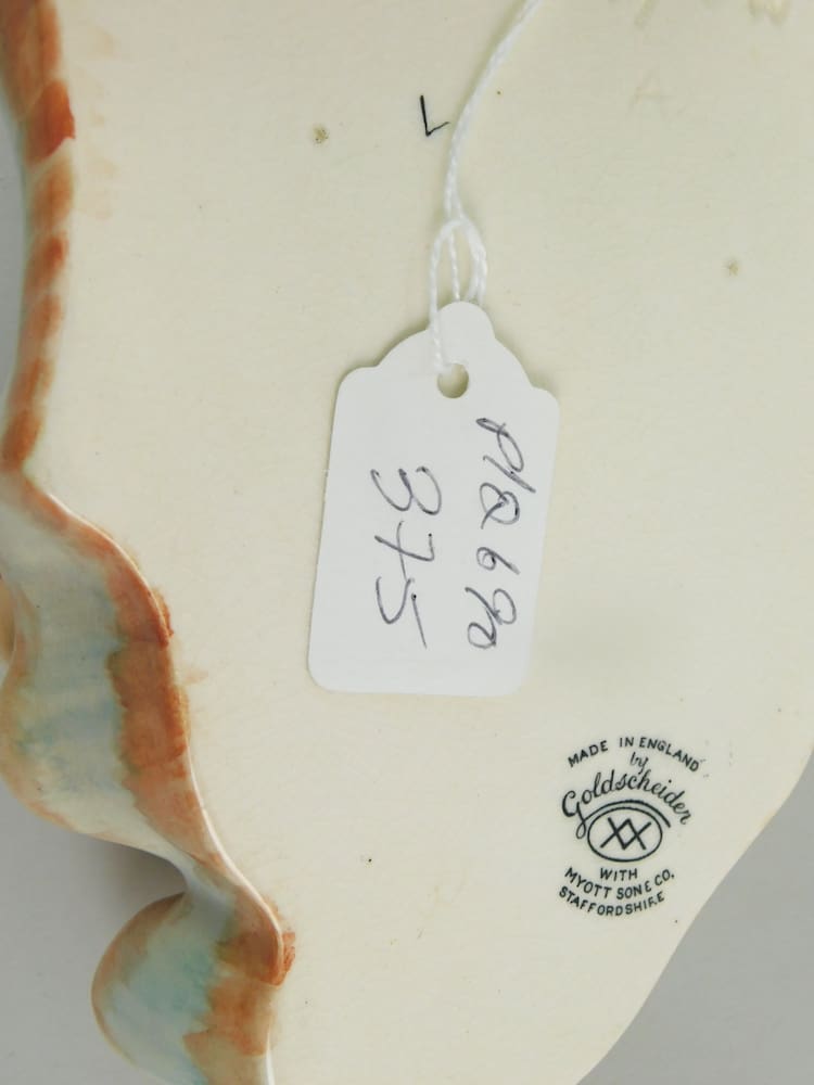‘Eva’ this wonderful ceramic mask is marked to the back – Made in England by Goldscheider with Myott & Sons, Staffs. Designed in 1933 by Rudolf Knorlein. Myott worked in collaboration with Goldscheider during the 1940’s.