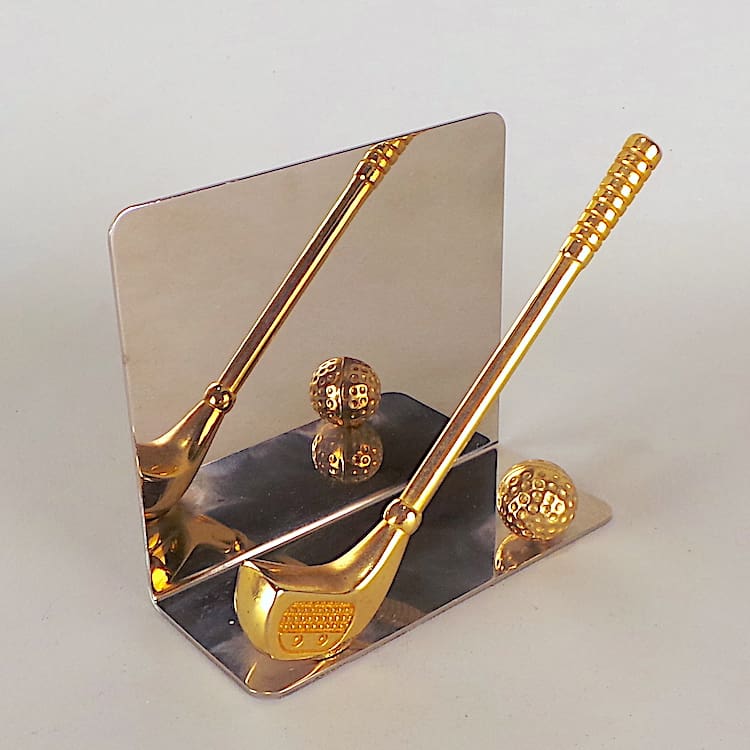 French Art Deco chrome and gilt metal letter rack with Gold club and ball