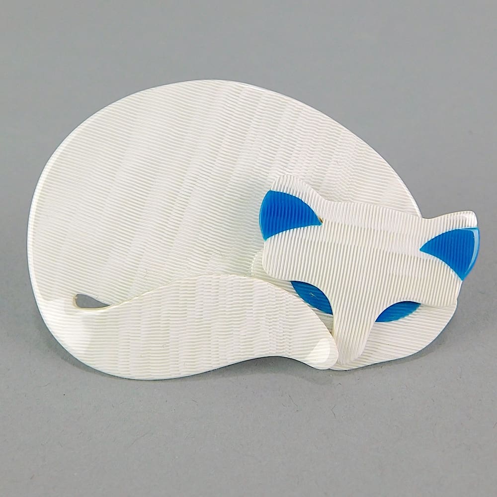 Gomina the sleeping cat brooch made in the 1990’s by Lea Stein. Signed on the V clasp.