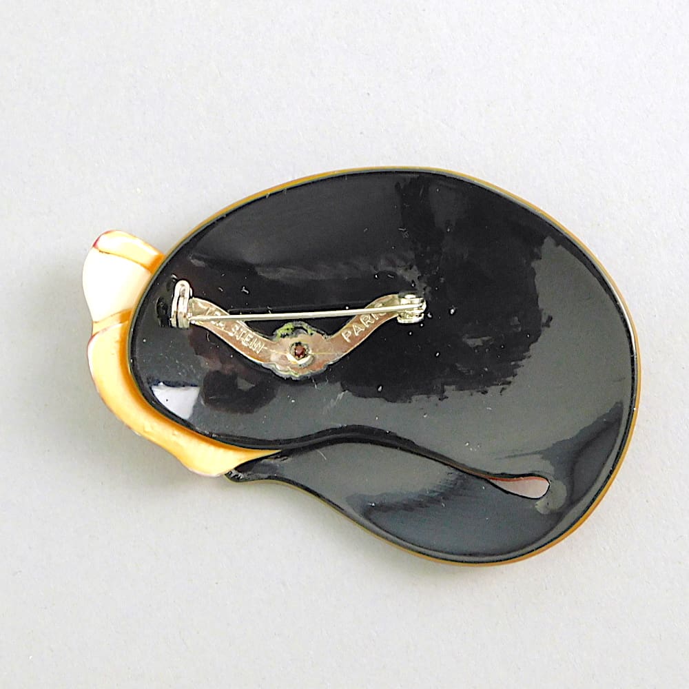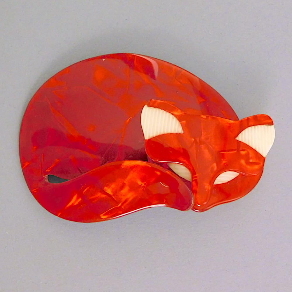 Sleeping cat brooch made in the 1990’s by Lea Stein. Signed on the V clasp.