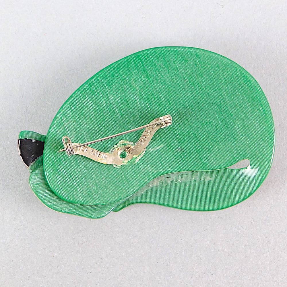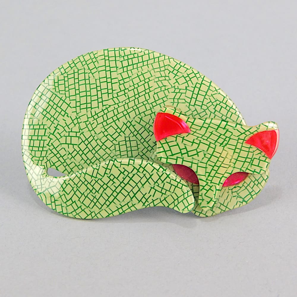 Sleeping cat brooch made in the 1990’s by Lea Stein. Signed on the V clasp.