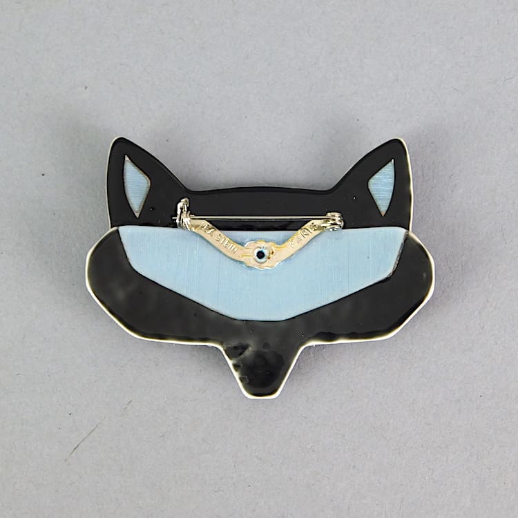 Early fox head Lea Stein brooch, signed on the V clasp. 2.5 inches (6.5cm) wide. Excellent condition.