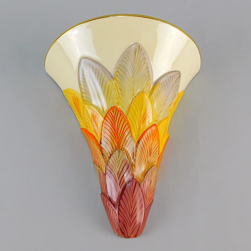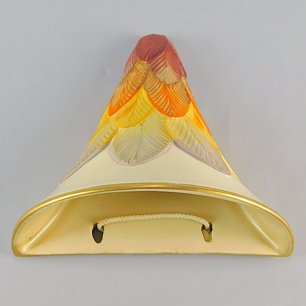 Ceramic wall pocket with layered foliage hand painted finish.