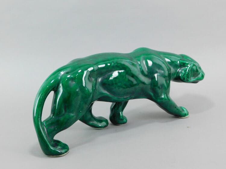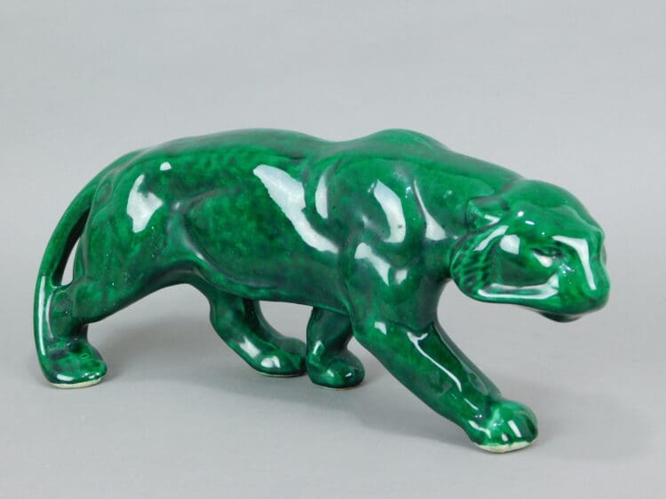 A French green ceramic panther in prowling pose – sculptor unknown.
