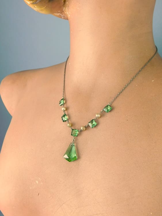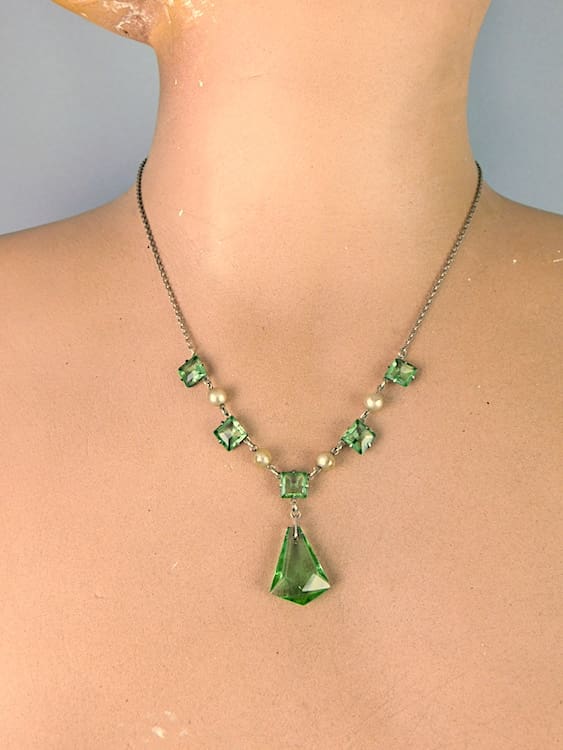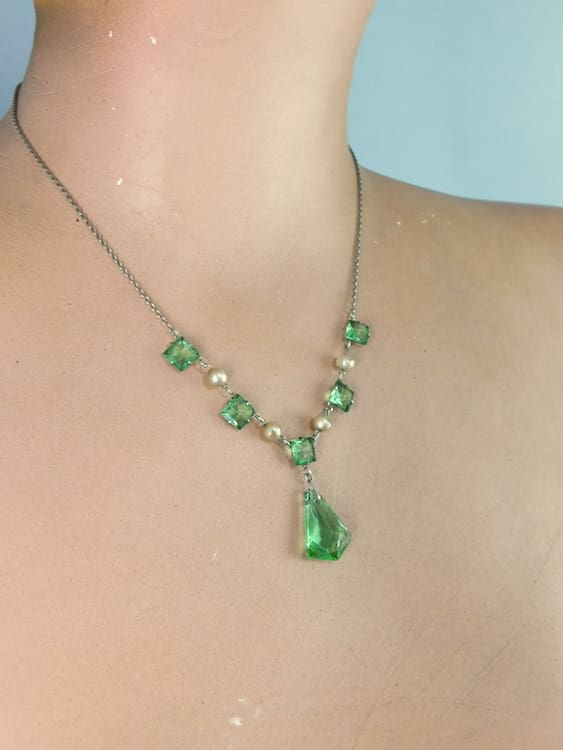 An original silver, glass and faux pearl necklace, although apparently no silver mark present.
