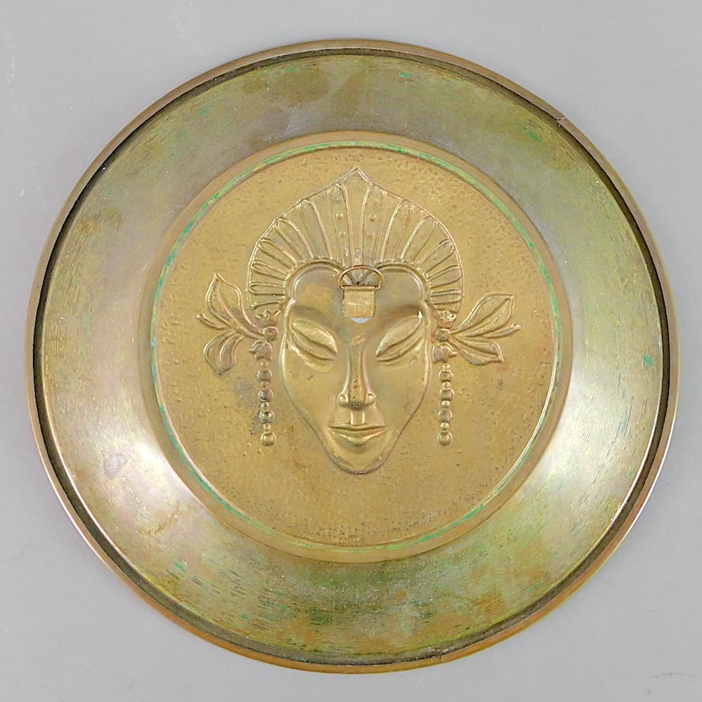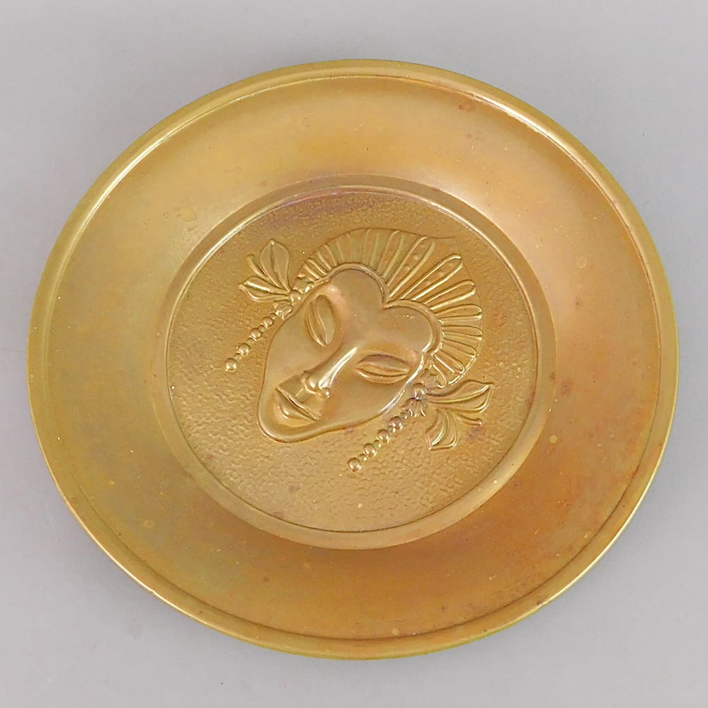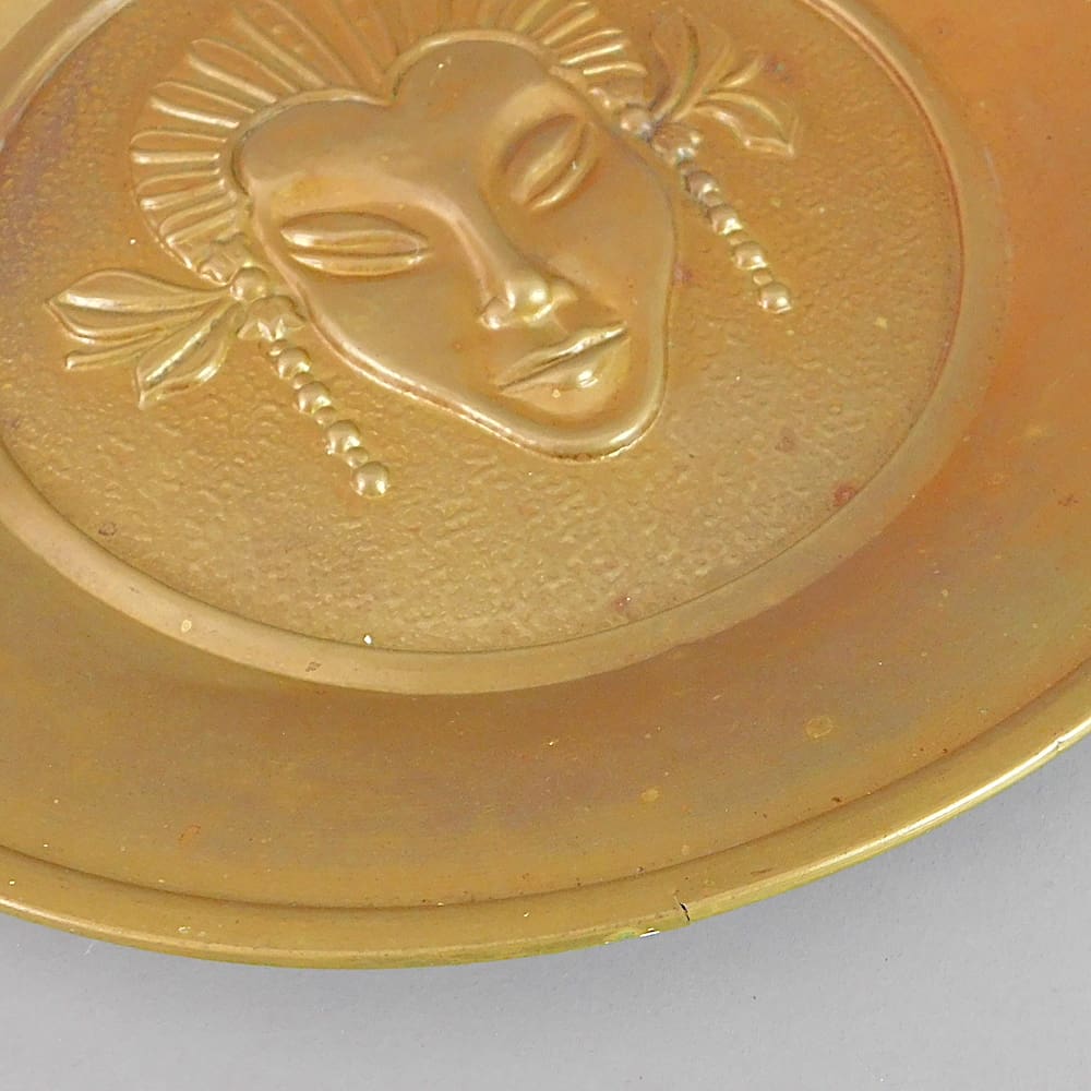 Good condition with minor wear to the patina and two tiny edge splits to the metal.