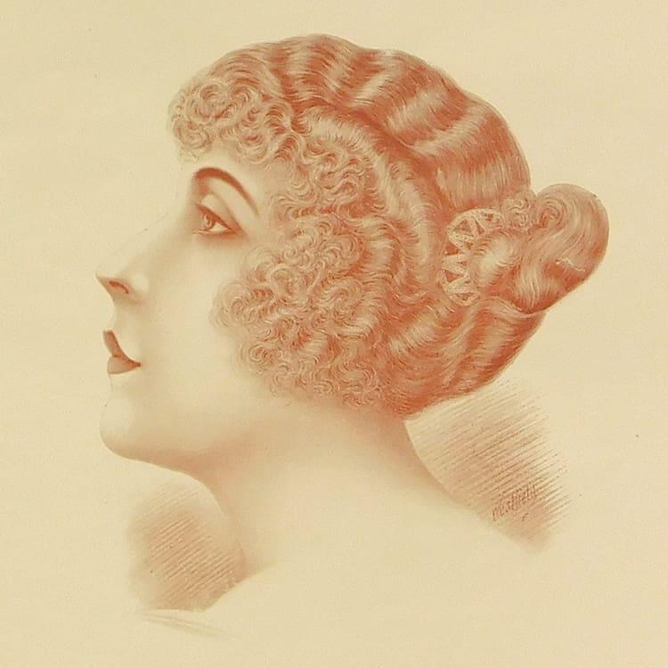 Taken from hairdressing magazine June 1924. Its title is a permanently waved short hairdressing.