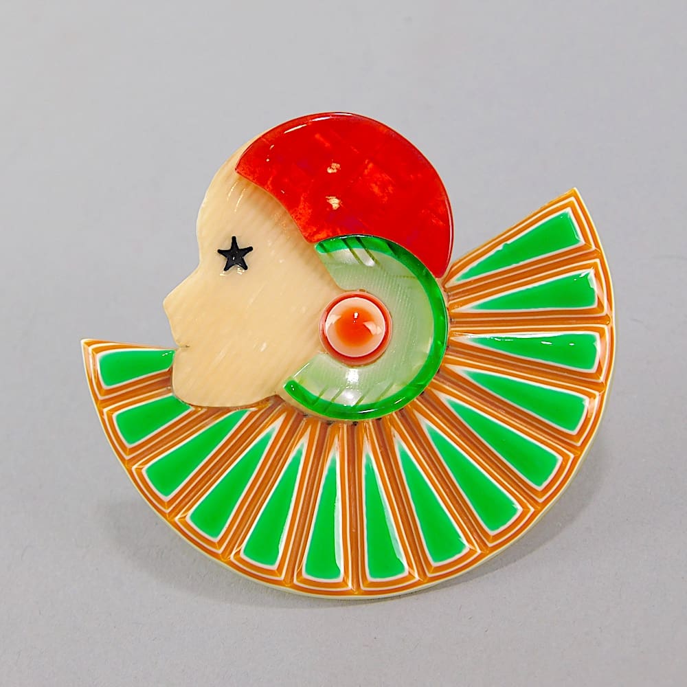 Vintage half Colorette pierrette brooch (1968 – 80 and no longer being made). Signed on the safety V clasp.