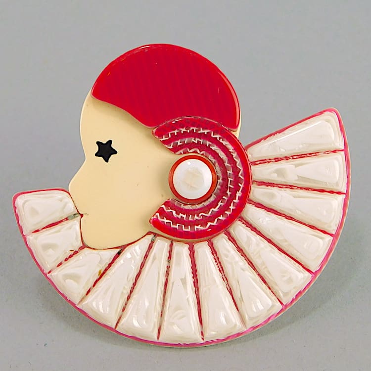 Vintage half Colorette pierrette brooch (1968 – 80 and no longer being made). Signed on the safety V clasp.