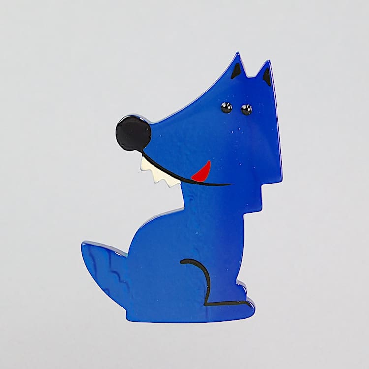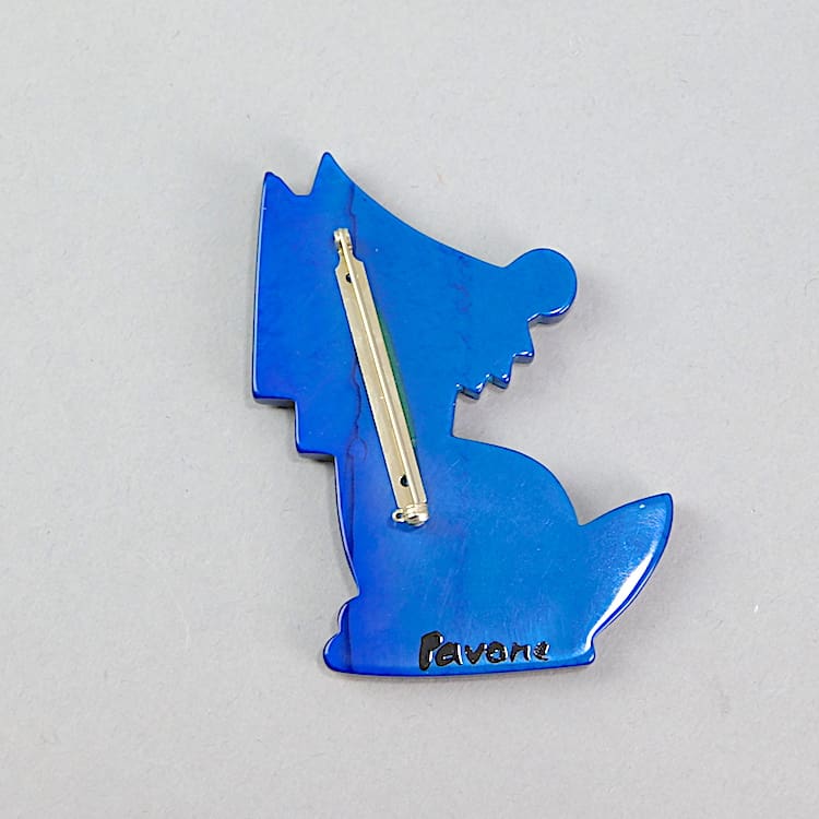 French hand painted vintage galalith, hand signed wolf brooch by Marie-Christine Pavone.