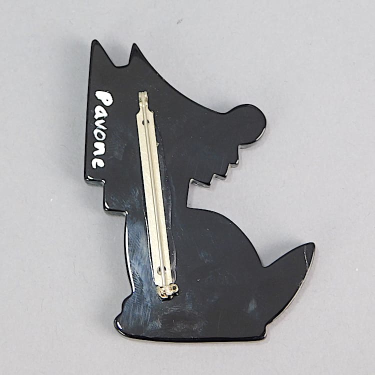 French hand painted vintage galalith, hand signed wolf brooch by Marie-Christine Pavone.