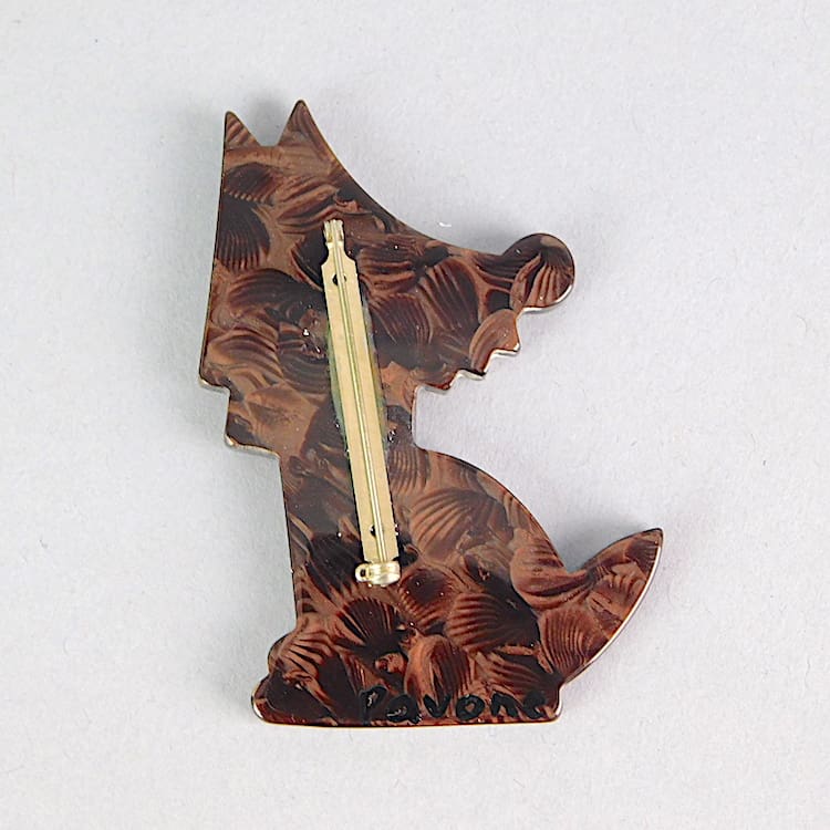 French hand painted vintage galalith, hand signed wolf brooch by Marie-Christine Pavone.