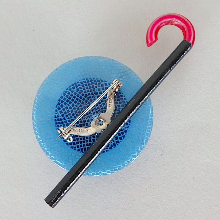 Rare first edition hat and cane brooch by Lea Stein made around 1968.