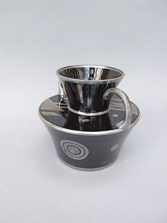 Large grecian style French glass vase with silver detailing. Made in the late 1920’s to the early 1930’s by Hem and signed to the side.