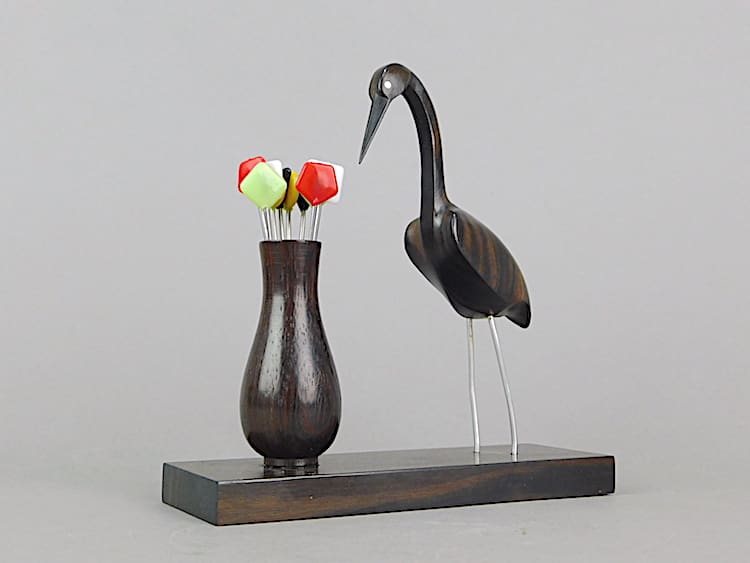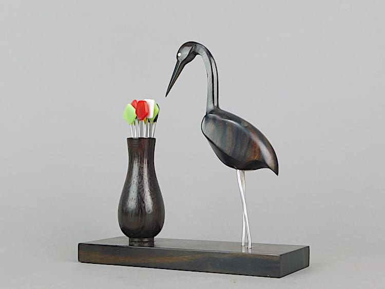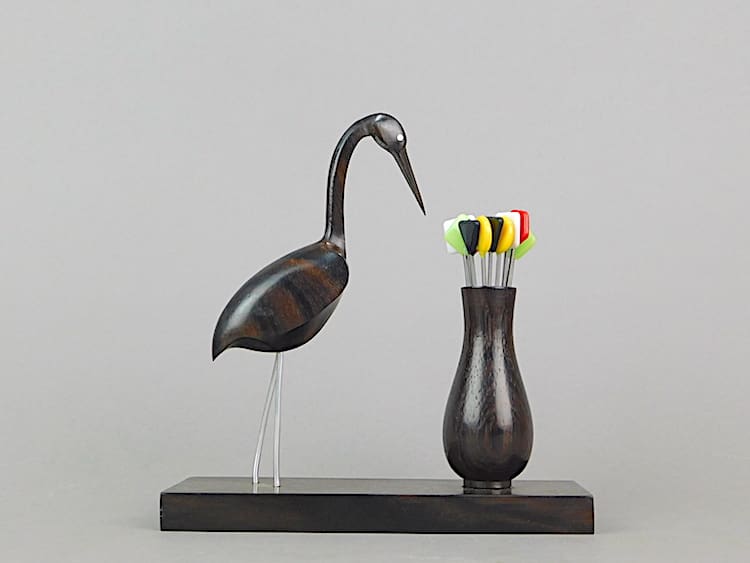 French art deco Macassar Heron cocktail sticks set with 10 sticks.