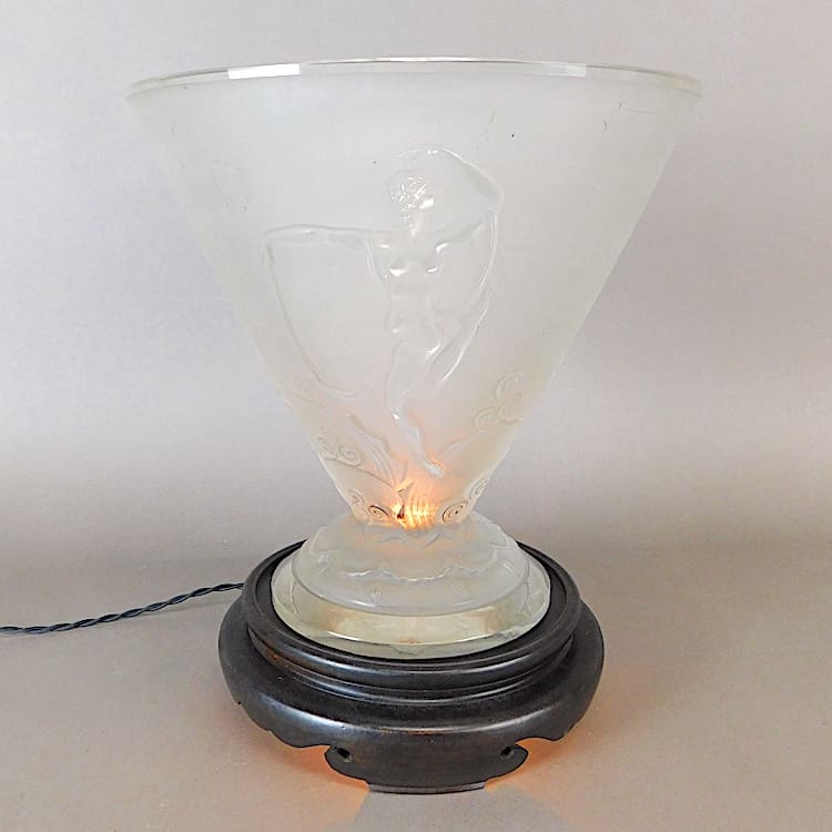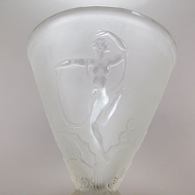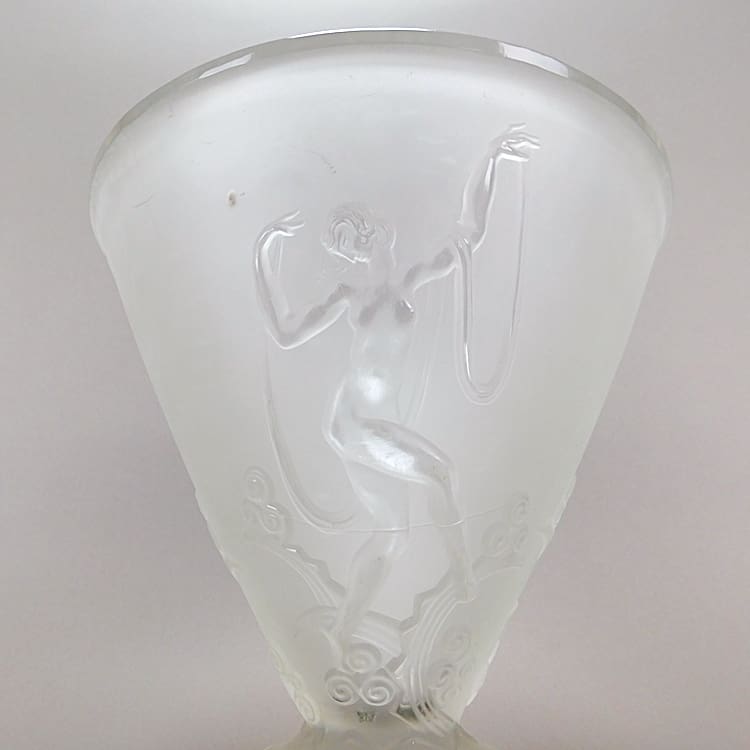 Large Czech nude ladies glass vase, made by Heinrich Hoffman in 1934.