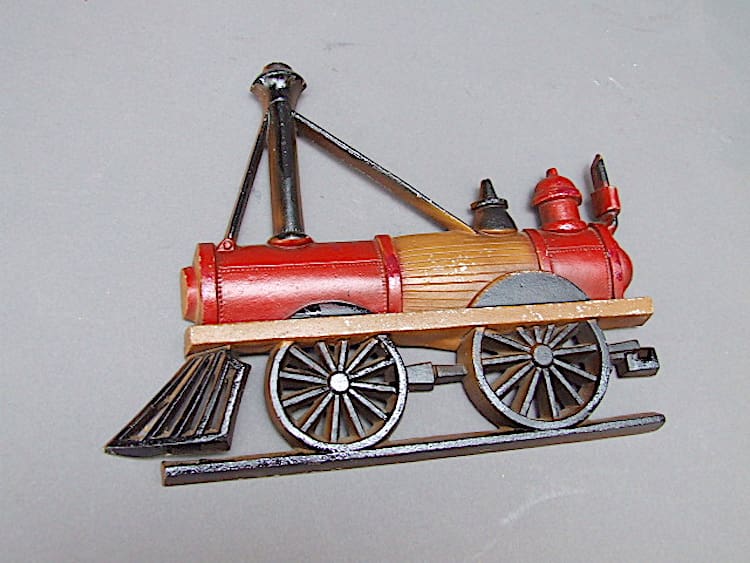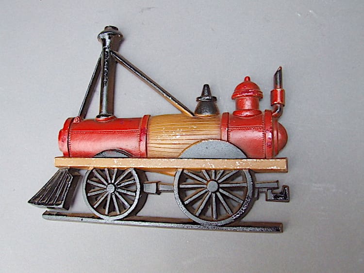 American 1970’s Train plaques. Made of cast metal and date to 1975. Hand painted and has a hanging hook on the back.