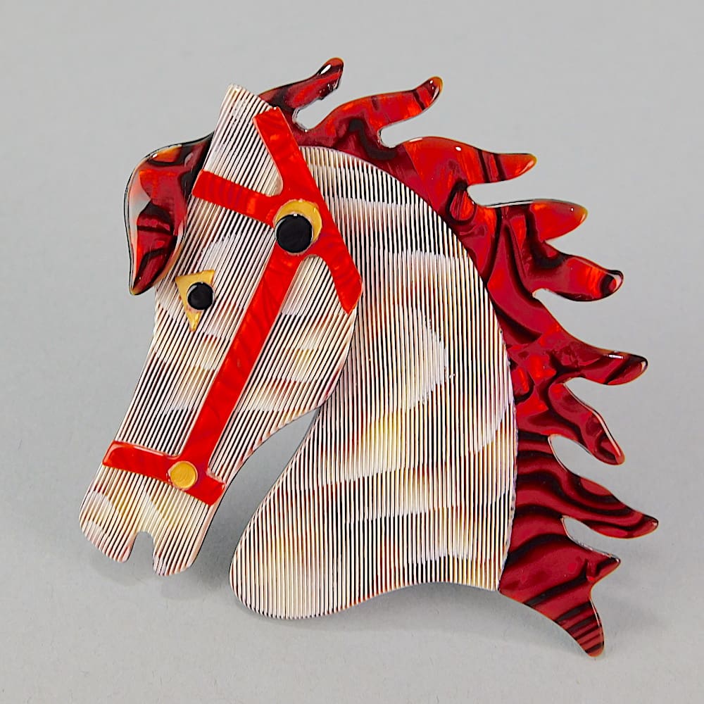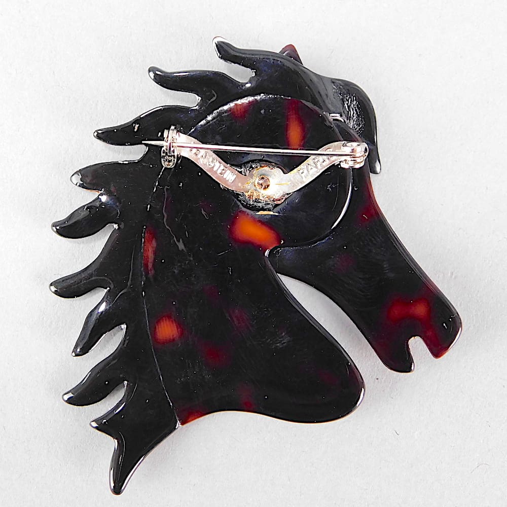Large Lea Stein horse brooch. Signed on the safety V clasp.