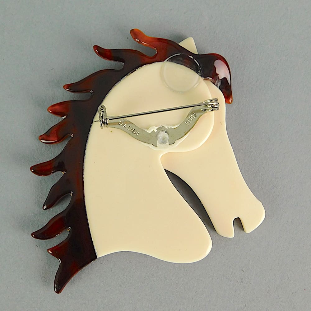 Large horse brooch. Signed on the safety V clasp.