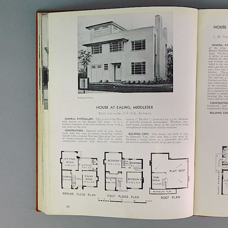 Original English architectural book titled – Houses for Moderate means and published in 1936. It 112 pages with many original Art Deco plans and cost for build. You could build a nice deco house for under £1000!