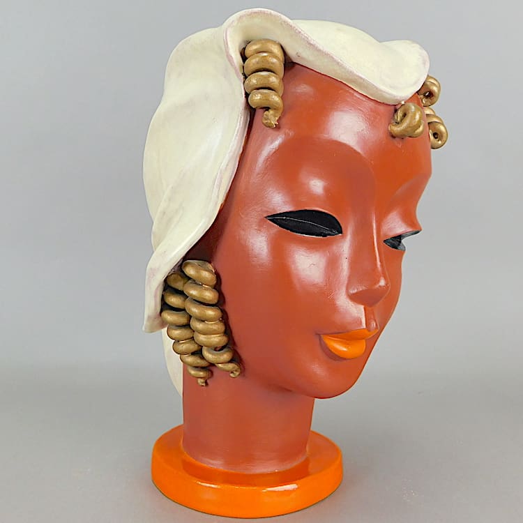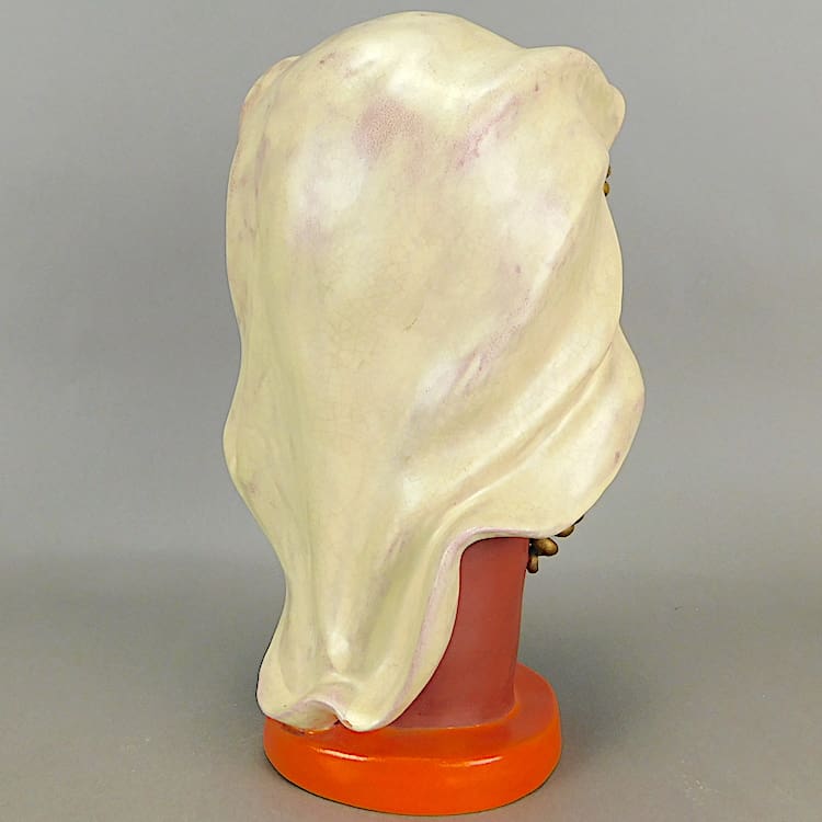 Rare huge almost life size Art Deco hand painted terracotta bust – by Goldscheider.