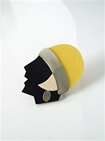 French art deco phenolic and chrome Josephine Baker ladies head brooch.