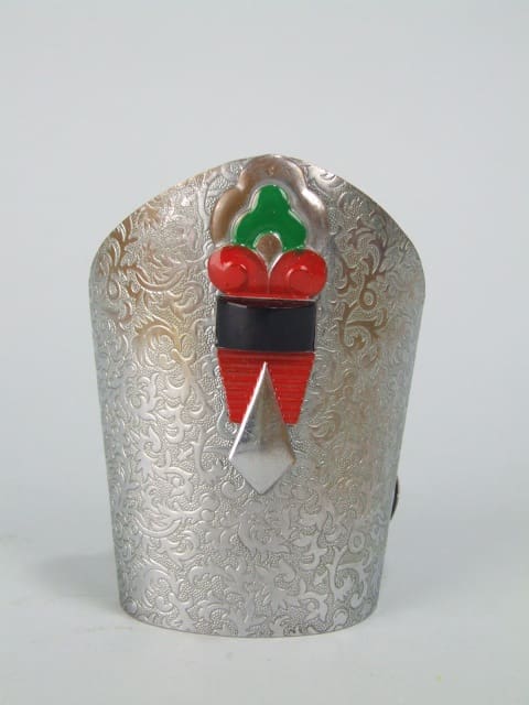 Floral decorated chromed metal slave bangle.