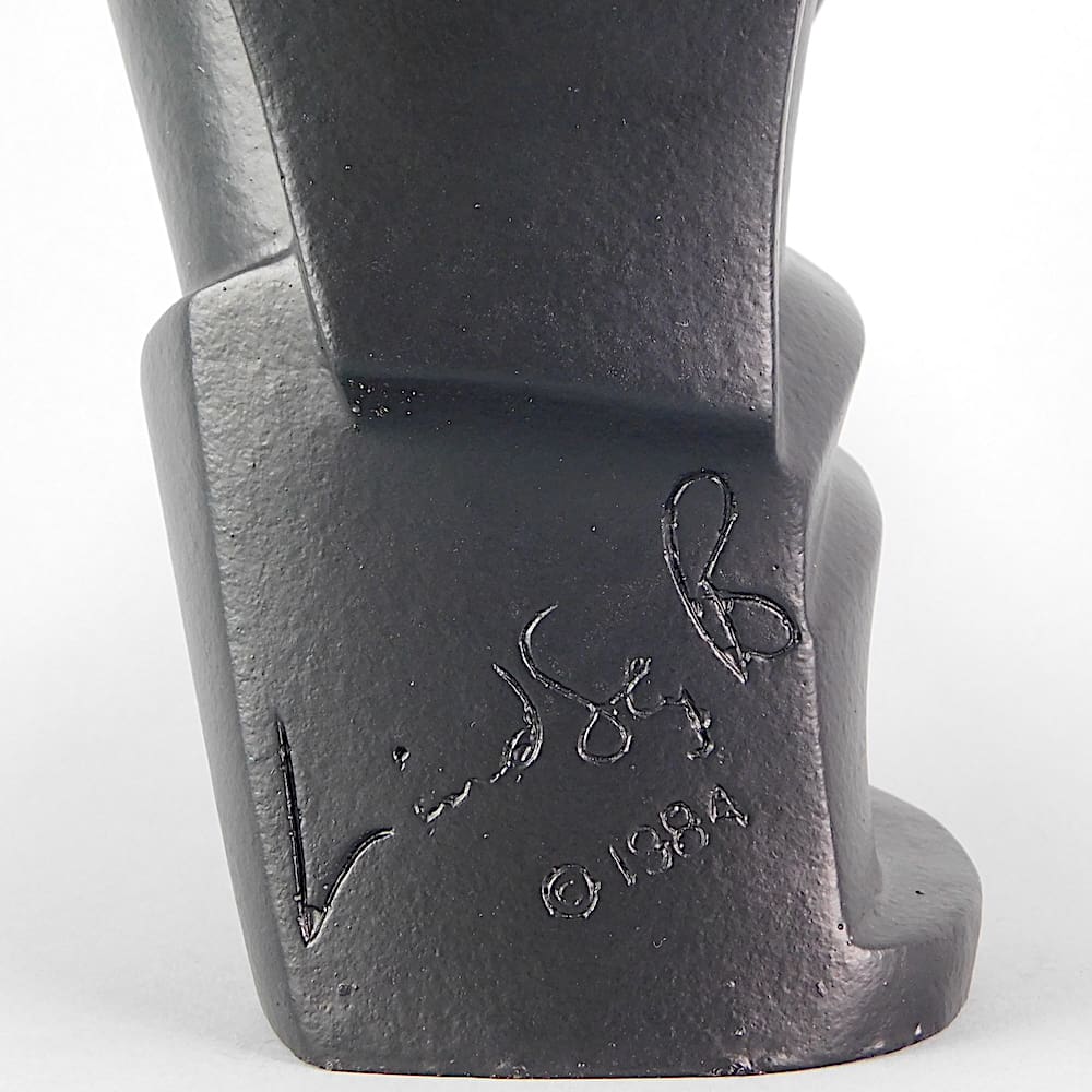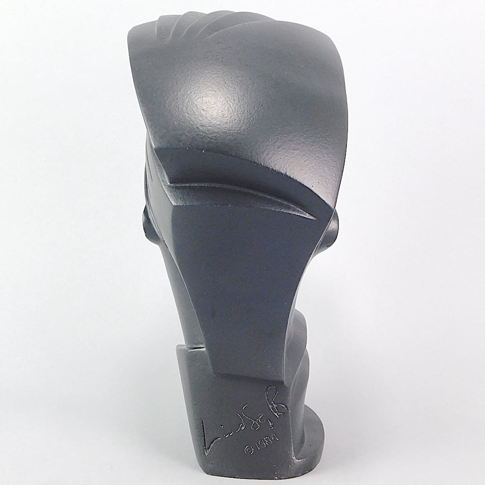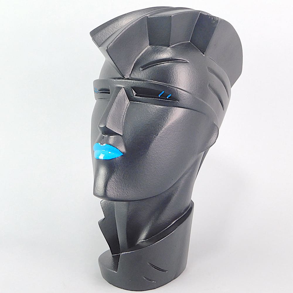 This is the free standing model painted black with Blue detail to her lips and eyes, signed and dated 1984 to the reverse.