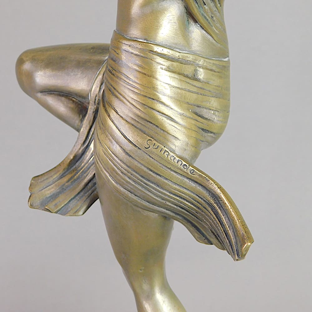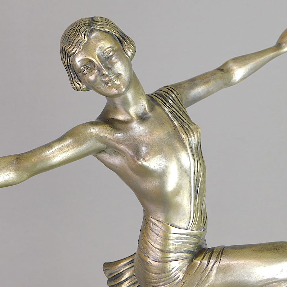Signed Guirande to the back of her sash and mounted on a green marble base.